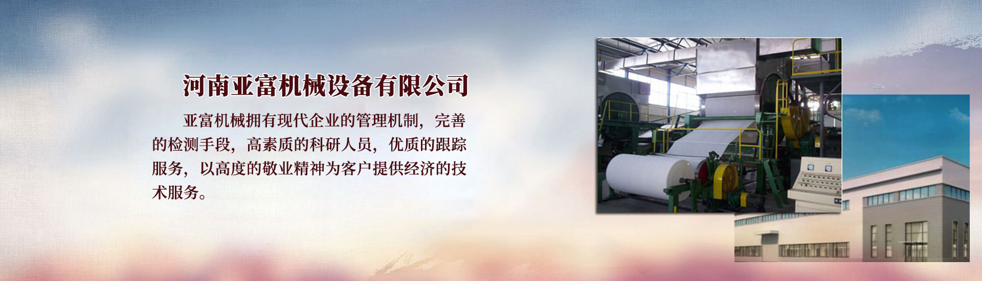 河南亞富機(jī)械設(shè)備有限公司致力于為用戶(hù)提供質(zhì)量?jī)?yōu)、工藝成熟的各種造紙?jiān)O(shè)備、造紙機(jī)械、和制漿造紙裝備及各種紙類(lèi)加工設(shè)備。設(shè)備可用于各種生活用紙和工業(yè)用紙的造紙企業(yè),以及草漿、木漿、竹漿和再生漿的制漿企業(yè)。[查看詳情]